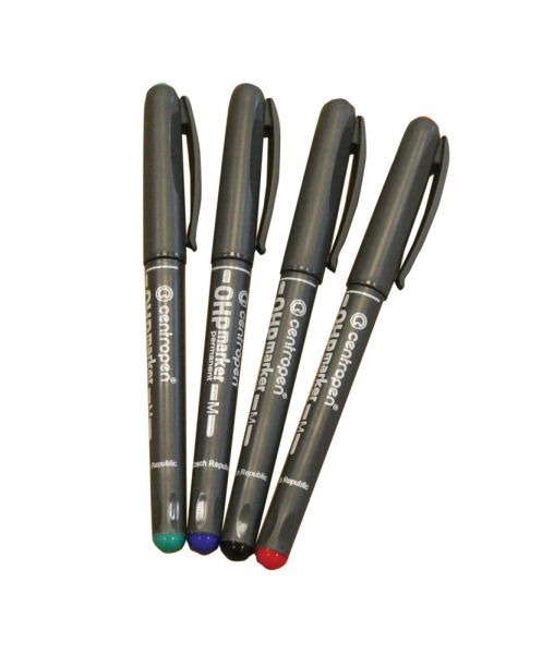 4 db-os, tartós alkoholos filctoll készlet fekete, kék, piros és zöld színben, gyorsan száradó, vízálló tintával, sokféle felületre alkalmas, precíz íráshoz és jelöléshez.