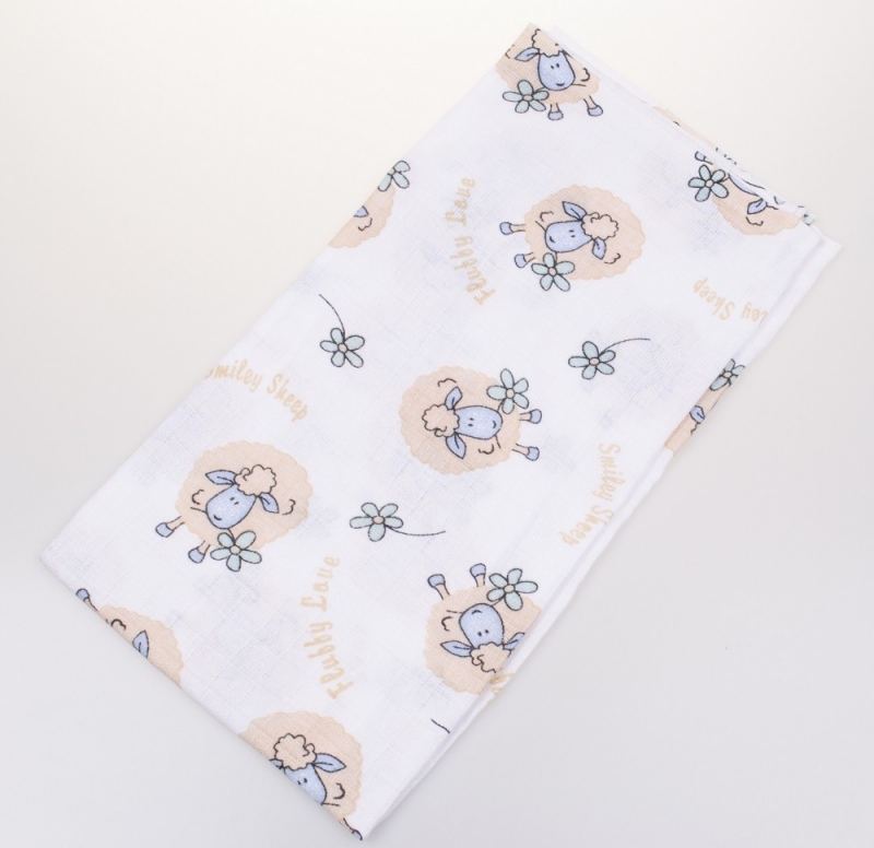Kék bárányka mintával ellátott, Tetra típusú textilpelenka. Magasminőségű anyaga antiallergén, jó nedvszívó képességű és kimondottan puha. Mérete: 70x70 cm