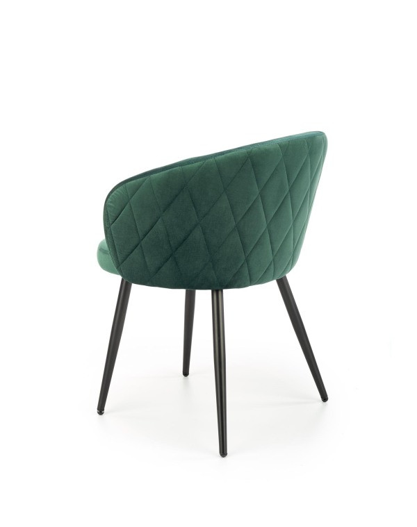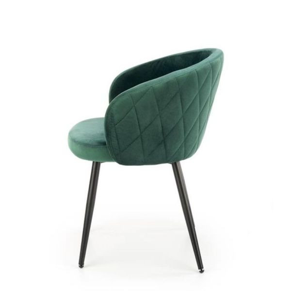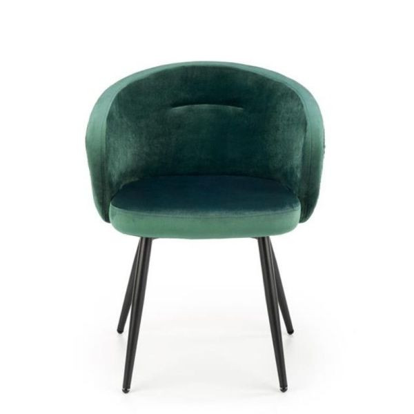 Mérete: 61x54x77 cm (szé x mé x ma) Ülésmagasság: 48 cm Anyaga: - sötétzöld színű, bársonyszövet ülőfelület és támla - fekete színű, porszórt acél lábak A fotel szék modern megjelenésének köszönhetően kiváló választás lehet étkezőkbe és tárgyalókba egyaránt. Kialakítása kényelmes, puha ülőfelülete és stabil támlája megfelelő támaszt nyújt.