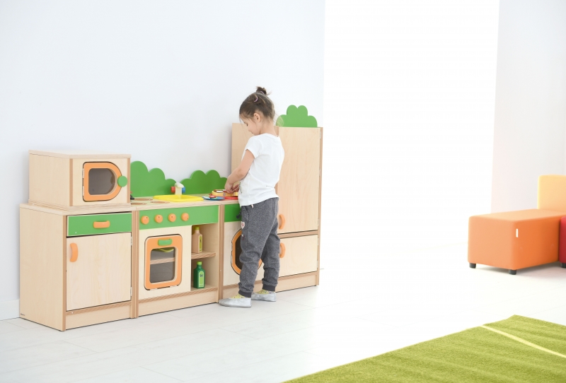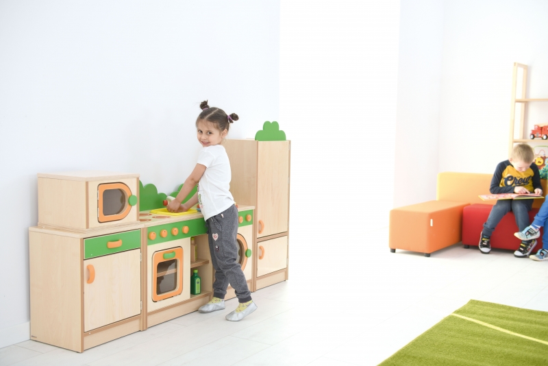 A Böbe Minikonyha tartós, biztonságos és színes szerepjáték bútor.