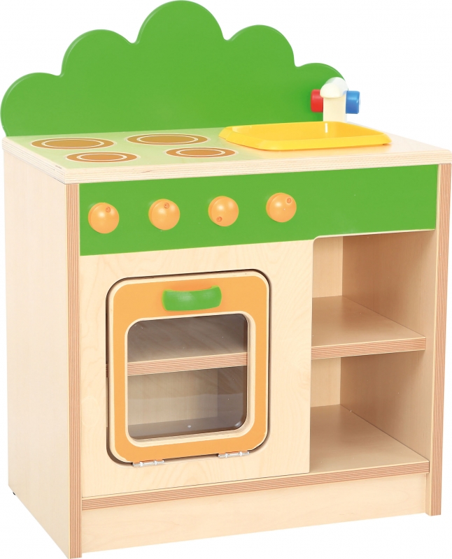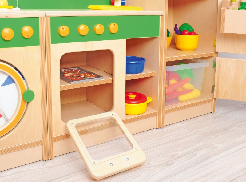 A konyha tetején található 4 zónás főzőlap alatt nyitható ajtós sütő kapott helyet, amely még valósághűbbé teszi a játékot.