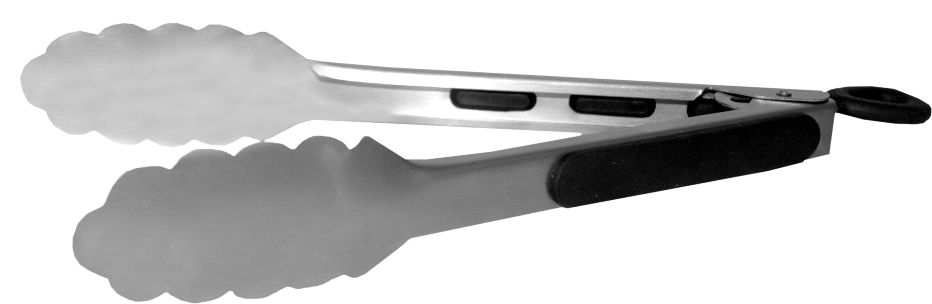 Univerzális csipesz akasztóval, rozsdamentes csipkézett, kagyló fejjel, nyelén csúszásmentes, szilikonos markolattal. 30 cm. Alkalmas grillezéshez, a magas hőmérsékleten kezelt húsok és egyéb élelmiszerek kiemelésére a serpenyőből és egyéb sütőfelületekről. Mosogatógépben mosható. Mérete: 30 cm Anyaga: Rozsdamentes