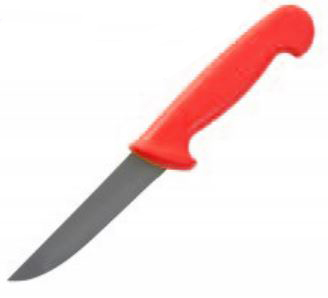 Rozsdamentes acélból készült kés ,13 cm-es piros színű műanyag nyéllel. Karcmentes, folyékony mosószerrel tisztítható.