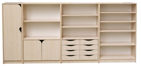 A Laura szekrénysoraink laminált bútorlapból készülnek, ABS élzárással. A szekrénysor különböző színekben rendelhető juhar, világos bükk, bükk, biofenyő, öregcseresznye).