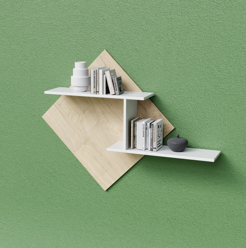 Modern megjelenésű falipolc, amely kellemes színvilágának köszönhetően irodai környezetben is kiválóan mutat.