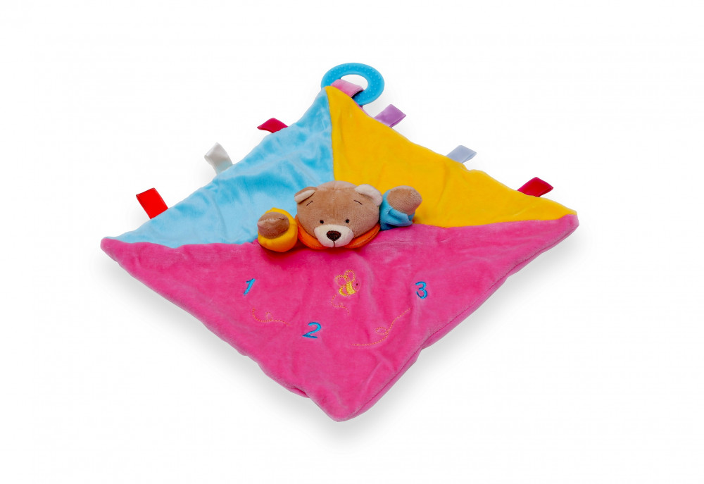 A puha anyagból készült szundikendő színtartó, biztonságos és környezetbarát kialakítású. Kiválóan alkalmas a baba korai látási és tapintási készségeinek fejlesztésére. Tartós, könnyen kezelhető és mosógépben 30°C-on mosható.