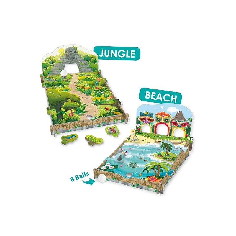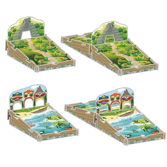 TARTALOM: - 2 helyszín (28,5x20 cm) - 8 parafa golyó (3 cm átmérő) - 12 zseton-akadály a helyszínekhez