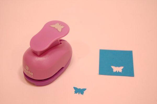 A kb. 1,6 cm-es lyukasztási méretű, kisméretű formalyukasztóval könnyedén készíthetők pillangó alakú díszek papírból, kartonból vagy dekorgumiból.