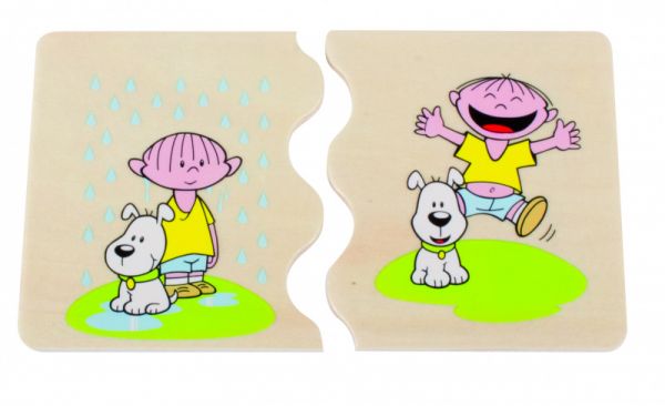 Tartalma: - 20 db fa puzzle darab Doboz mérete: 15x10x6 cm Fa lapocskák mérete: 6,5x7,5 cm