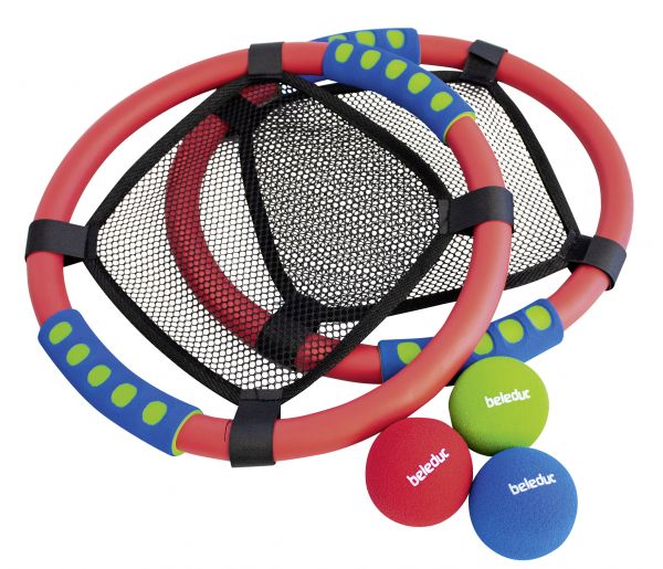 A termék mérete: 31x34x4 cm Tartalma: - 2 db hálós ütő - 3 db puha labda