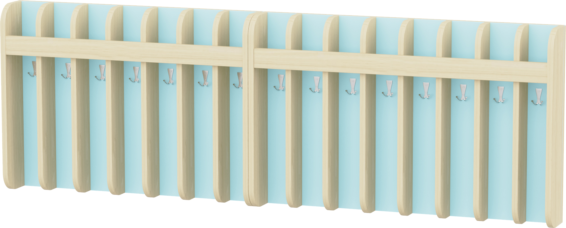 Az előírásoknak megfelelően fakkonkénti elválasztással, így biztosítva, hogy a törölközők nem érnek egymáshoz. A fakkok mindegyike 1-1 db kétágú akasztót tartalmaz, melyre a törölközőt és a nyeles kisfésűt is fel lehet akasztani. A felső fakkokba helyezhetőek a fogmosópoharak. Az ovisjelek is könnyen felhelyezhetőek az erre a részre kialakított díszlécre.
