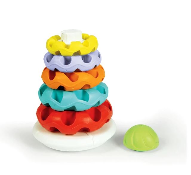 A gyűrűk különböző felülettel rendelkeznek, ezzel stimulálva a kicsik tapintását.