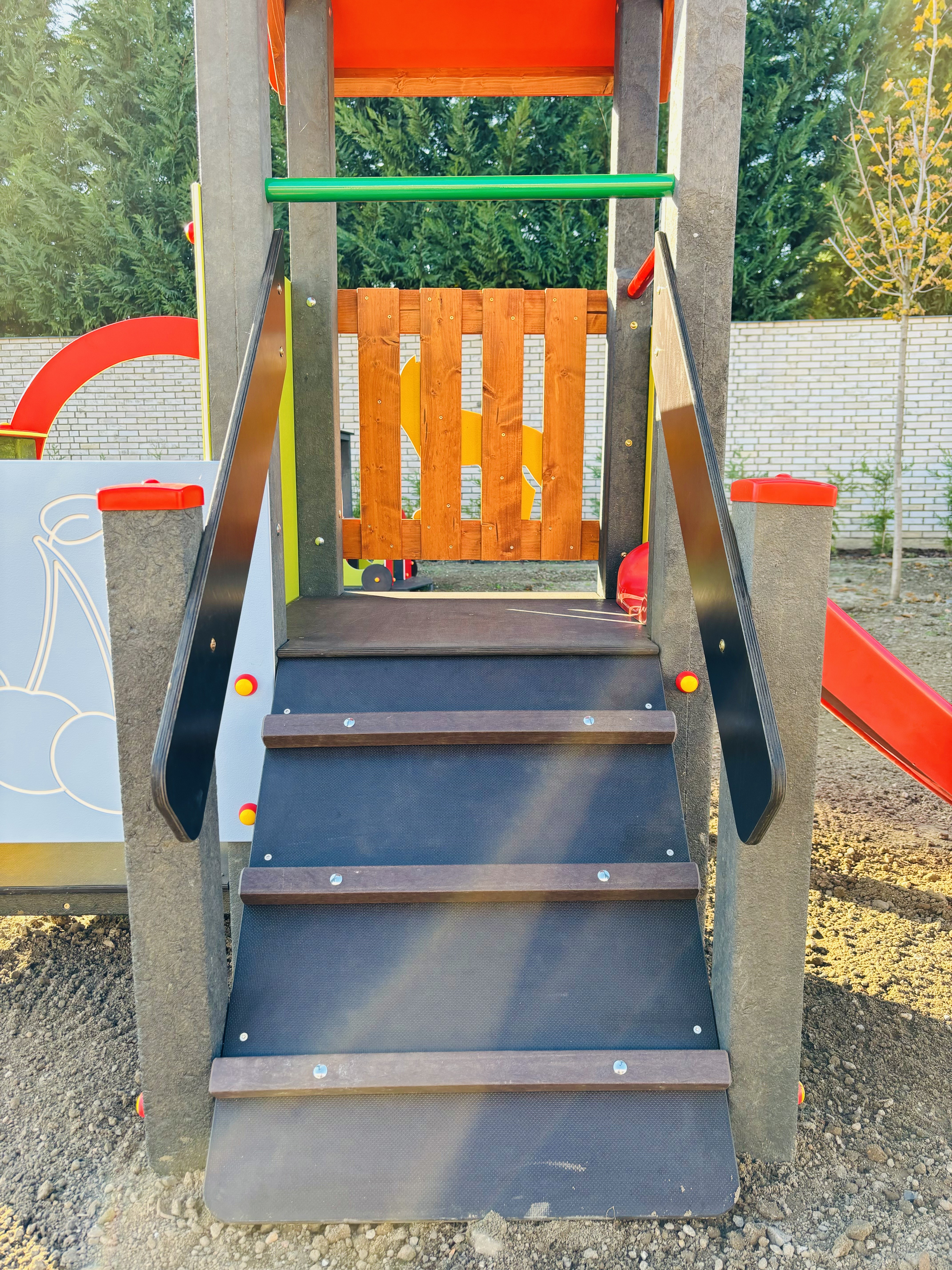 A csúszda anyagai jóval ellenállóbbak a színesre festett fa anyagoknál, így gondozást nem igényelnek.