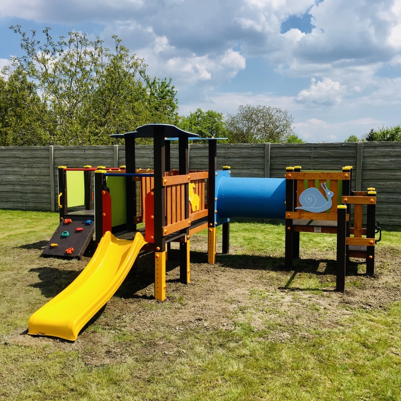 Bölcsis mászócentrum 1 db 60 cm-es magasságból induló mini csúszdával, 1 db bordázott, 50 cm átmérőjű fekete átbújócsővel, 1 db mászófallal, 1 db mászórámpával és fix kishíddal, 1 db kötélhíddal. Eszköz mérete: 4,3x3,62 m Magasság: 1,8 m Esésmagasság: 0,60 cm Gondozásmentes: 85% Teljes magasság: 1,8 m Esésmagasság: 0,6m Ütéscsillapítás: nem szükséges Életkor minimum: 0 Év Életkor maximum: 14 Év Tanúsított termék, telepítést igényel!