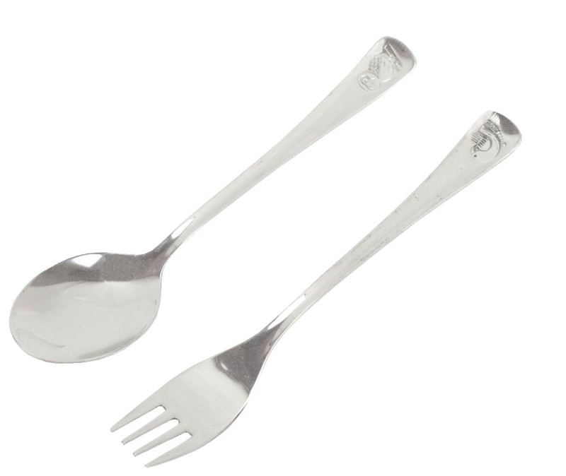 A fém evőeszközkészlet kiválóan alkalmas a kicsik számára, akiknek még a felnőtt eszközök túl nagyok lennének.
