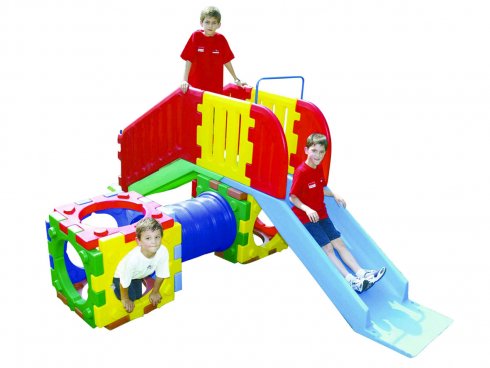 Tartalma: 12 db 66x66x6 cm-es oldalelem 1 db 200x45 cm-es csúszda 1 db 200x45 cm-es lépcsőelem 2 db 200x45 cm-es korlát 2 db 66x45 cm-es oldalelem 2 db záróelem 1 db ? 84 cm-es csőelem. Az elemen lévő lyuk átmérője 44 cm. Termék mérete: 200x380 cm