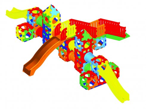 Tartalma: 54 db 66x66x6 cm-es oldalelem-négyzet 22 db 132x64x6 cm-es duplaelem 8 db 57 cm-es háromszögelem 1 db 200x45 cm-es csúszda 2 db 200x45 cm-es lépcsőelem 2 db 195x45 cm-es csúszda 4 db 200x45 cm-es korlát 4 db 66x45 cm-es oldalelem 2 db záróelem 8 db ? 84 cm-es csőelem. Az elemen lévő lyuk átmérője 44 cm. Termék mérete: 640x900 cm