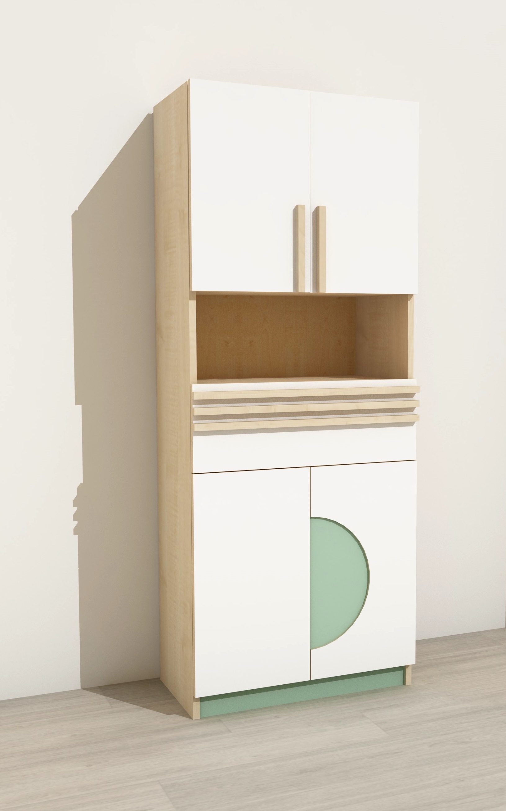 Színe: Az alaptest kellemes juhar, az ajtók fehér, a félköríves betét pedig pasztellzöld színűek.