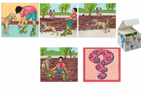 Az eseménysorozatokat gyermek közeli élményekből állították össze, amelyek alkalmasak az összefüggések valamint az időrendiség felismerésére, szókincsfejlesztésre. A kirakott képek bármelyikét kicserélhetjük a kérdőjelet ábrázoló kártyával, így a gyermek fantáziájára bízzuk a történet folytatását.