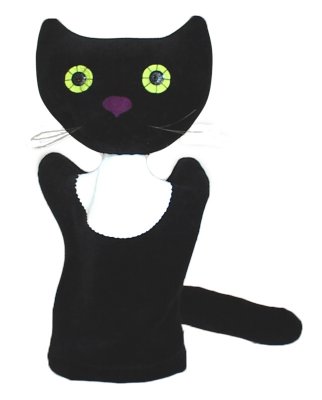 Cica kesztyűbáb felnőtt kézre Antoni Rozália iparművész által tervezett zsűrizett iparművészeti alkotás. Magyarországon előállított, többnyire magyar alapanyagokból, kézi munkával készített, magas minőségű termék, mely kimondottan pedagógia módszertani szempontok alapján lett kialakítva. Felnőtt kézre méretezve, így kiválóan alkalmas az anyanyelvi vagy zenés foglalkozások színesítésére, kiegészítésére. A cica kesztyűbáb 25-30 cm méretű, ötujjas, puha textil anyagból készült báb. Teste és feje fekete, mellkasa fehér színű. Nagy szemei zöldek, csíkozása miatt hűen adja vissza az állat jellegzetes külső vonásait. Hosszú bajsza és farka van. Megjelenésében kedves, jól beilleszthető bármilyen állatos mesébe, énekes játékba. A manufakturális gyártásból adódóan előfordulhat, hogy a bábok más színű és mintájú anyagból készülnek el, mint ahogy az a képen látható!