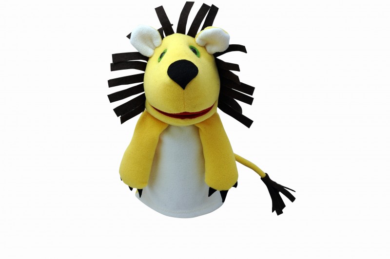 Tátogó oroszlán kesztyűbáb felnőtt kézre Antoni Rozália iparművész által tervezett zsűrizett iparművészeti alkotás. Magyarországon előállított, többnyire magyar alapanyagokból, kézi munkával készített, magas minőségű termék, mely kimondottan pedagógia módszertani szempontok alapján lett kialakítva. Felnőtt kézre méretezve, így kiválóan alkalmas az anyanyelvi vagy zenés foglalkozások színesítésére. A tátogó oroszlán kesztyűbáb 25-30 cm nagyságú, három ujjas, puha textil anyagból készült báb. Teste fehér színű, feje és mellső lábai sárgák. Fejének kialakítása miatt a száj nyitható és zárható. Sörénye, karmai és a farka végén lévő bojtszerű dísz fekete. Fülei fehérek, szemei zöld alapon feketét. Kedves külsejének köszönhetően bármilyen foglalkozást könnyen fel lehet vele dobni. A manufakturális gyártásból adódóan előfordulhat, hogy a bábok más színű és mintájú anyagból készülnek el, mint ahogy az a képen látható!