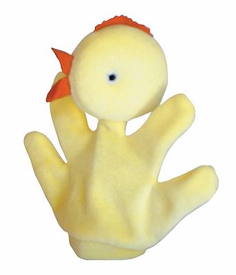 Csibe Kesztyűbáb gyermek kézre: 3 éves kortól, anyaga textil Antoni Rozália iparművész által tervezett zsűrizett iparművészeti alkotás. Magyarországon előállított, többnyire magyar alapanyagokból, kézi munkával készített, magas minőségű termék, mely kimondottan pedagógia módszertani szempontok alapján lett kialakítva. A kisgyermekek kezére méretezett, 15 cm-es, puha textil anyagból készült, ötujjas kesztyűs kialakítás megkönnyíti a szerepjátékokat, de mindennapi, tartós játéknak is megfelelnek. A csibe kesztyűbáb gyermek kézre halványsárga kesztyűvel és fejjel, narancssárga filc csőrrel, kisméretű szemekkel és taréjjal egyértelműen felismerhető karaktert mutat, bemutatva a közkedvelt háziállat jellemző vonásait. A manufakturális gyártásból adódóan előfordulhat, hogy a bábok más színű és mintájú anyagból készülnek el, mint ahogy az a képen látható!