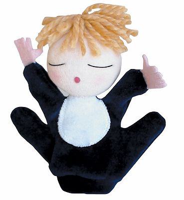 Kisfiú Kesztyűbáb gyermek kézre: 3 éves kortól, anyaga textil Antoni Rozália iparművész által tervezett zsűrizett iparművészeti alkotás. Magyarországon előállított, többnyire magyar alapanyagokból, kézi munkával készített, magas minőségű termék, mely kimondottan pedagógia módszertani szempontok alapján lett kialakítva. A kisgyermekek kezére méretezett, 15 cm-es, puha textil anyagból készült, ötujjas kesztyűs kialakítás megkönnyíti a szerepjátékokat, de mindennapi, tartós játéknak is megfelelnek. A kisfiú kesztyűbáb gyermek kézre kék kesztyűvel, fehér mellényszerű betéttel a mellkasán, stilizált fejjel, fonálból kialakított rövid szőke hajjal egyértelműen felismerhető, kisfiús karaktert mutat. A manufakturális gyártásból adódóan előfordulhat, hogy a bábok más színű és mintájú anyagból készülnek el, mint ahogy az a képen látható!