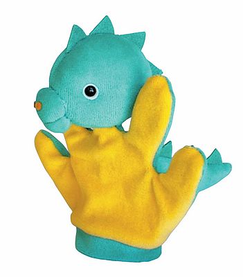 Sárkány Kesztyűbáb gyermek kézre: 3 éves kortól, anyaga textil Antoni Rozália iparművész által tervezett zsűrizett iparművészeti alkotás. Magyarországon előállított, többnyire magyar alapanyagokból, kézi munkával készített, magas minőségű termék, mely kimondottan pedagógia módszertani szempontok alapján lett kialakítva. A kisgyermekek kezére méretezett, 15 cm-es, puha textil anyagból készült, ötujjas kesztyűs kialakítás megkönnyíti a szerepjátékokat, de mindennapi, tartós játéknak is megfelelnek. A sárkány kesztyűbáb gyermek kézre zöld-sárga kesztyűvel és zöld fejjel, azonos színű filc taréjával és kiemelkedő orrával egyértelműen felismerhető karaktert mutat, bemutatva a mesebeli állat jellemző vonásait. A manufakturális gyártásból adódóan előfordulhat, hogy a bábok más színű és mintájú anyagból készülnek el, mint ahogy az a képen látható!