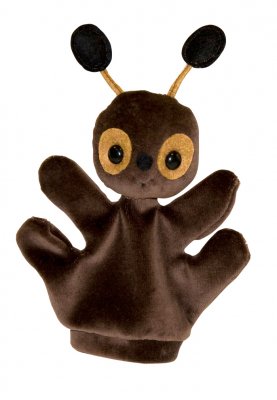 Hangya Kesztyűbáb gyermek kézre: 3 éves kortól, anyaga textil Antoni Rozália iparművész által tervezett zsűrizett iparművészeti alkotás. Magyarországon előállított, többnyire magyar alapanyagokból, kézi munkával készített, magas minőségű termék, mely kimondottan pedagógia módszertani szempontok alapján lett kialakítva. A kisgyermekek kezére méretezett, 15 cm-es, puha textil anyagból készült, ötujjas kesztyűs kialakítás megkönnyíti a szerepjátékokat, de mindennapi, tartós játéknak is megfelelnek. A hangya kesztyűbáb gyermek kézre barna kesztyűvel és fejjel, 2 kis csáppal ás nagy sárga szemeivel egyértelműen felismerhető karaktert mutat, bemutatva a kis rovar jellemző vonásait. A manufakturális gyártásból adódóan előfordulhat, hogy a bábok más színű és mintájú anyagból készülnek el, mint ahogy az a képen látható!