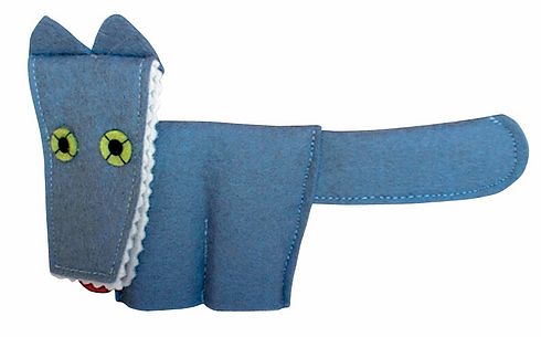A farkas ujjbáb teste szürke, kis háromszög fülekkel, és széles szájjal, amiből a fehér fogai kilátszanak. Az ujjbábok mérete általánosságban kb. 12,5 cm. Antoni Rozália iparművész által tervezett zsűrizett iparművészeti alkotás. Magyarországon előállított, többnyire magyar alapanyagokból, kézi munkával készített, magas minőségű termék, mely kimondottan pedagógia módszertani szempontok alapján lett kialakítva. Kiválóan alkalmas az anyanyelvi vagy zenés foglalkozások színesítésére, kiegészítésére. A manufakturális gyártásból adódóan előfordulhat, hogy a bábok más színű és mintájú anyagból készülnek el, mint ahogy az a képen látható!
