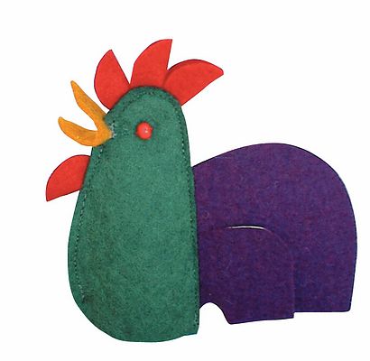 A kakas ujjbáb teste zöld, farktolla lila, csőre sárga, taraja és szakálla piros. Az ujjbábok mérete általánosságban kb. 12,5 cm. Antoni Rozália iparművész által tervezett zsűrizett iparművészeti alkotás. Magyarországon előállított, többnyire magyar alapanyagokból, kézi munkával készített, magas minőségű termék, mely kimondottan pedagógia módszertani szempontok alapján lett kialakítva. Kiválóan alkalmas az anyanyelvi vagy zenés foglalkozások színesítésére, kiegészítésére. A manufakturális gyártásból adódóan előfordulhat, hogy a bábok más színű és mintájú anyagból készülnek el, mint ahogy az a képen látható!