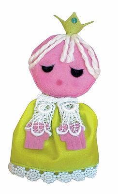 A királylány ujjbáb arca és kezei rózsaszínek, ruhája és koronája zöldes-sárga. Haja fehér színű fonal. Az ujjbábok mérete általánosságban kb. 12,5 cm. Antoni Rozália iparművész által tervezett zsűrizett iparművészeti alkotás. Magyarországon előállított, többnyire magyar alapanyagokból, kézi munkával készített, magas minőségű termék, mely kimondottan pedagógia módszertani szempontok alapján lett kialakítva. Kiválóan alkalmas az anyanyelvi vagy zenés foglalkozások színesítésére, kiegészítésére. A manufakturális gyártásból adódóan előfordulhat, hogy a bábok más színű és mintájú anyagból készülnek el, mint ahogy az a képen látható!