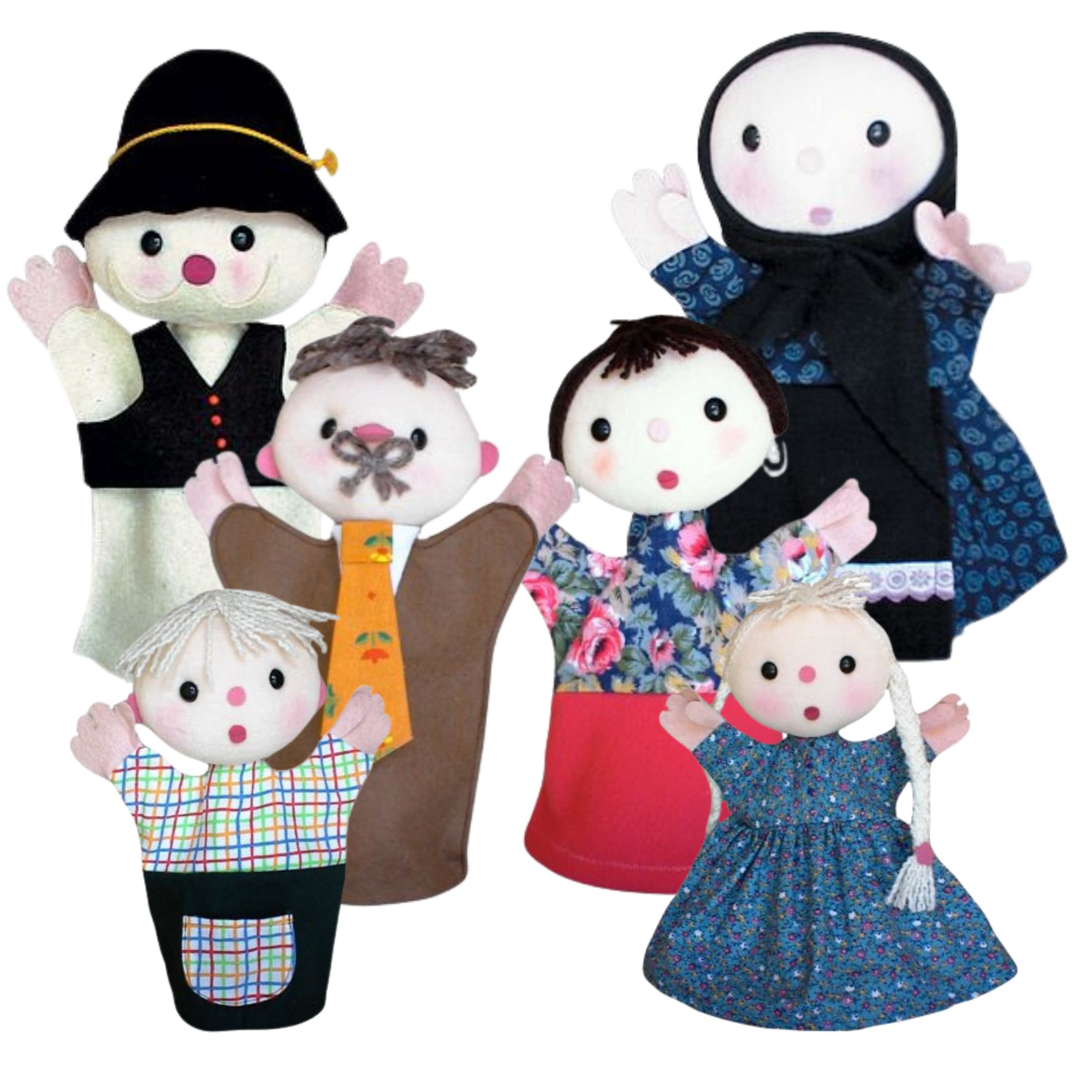 6 db kesztyűbáb felnőtt kézre Anya, Apa, Kisfiú, Kislány, Nagyanyó, Nagyapó