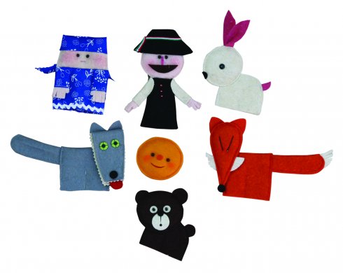 A Vajaspánkó ujjbábkészlet tartalma 7 db ujjbáb: Vajaspánkó, nagyanyó, nagyapó, nyuszi, róka, farkas és medve. Az ujjbábok mérete általánosságban kb. 12,5 cm. Antoni Rozália iparművész által tervezett zsűrizett iparművészeti alkotás. Magyarországon előállított, többnyire magyar alapanyagokból, kézi munkával készített, magas minőségű termék, mely kimondottan pedagógia módszertani szempontok alapján lett kialakítva. Kiválóan alkalmas az anyanyelvi vagy zenés foglalkozások színesítésére, kiegészítésére. A manufakturális gyártásból adódóan előfordulhat, hogy a bábok más színű és mintájú anyagból készülnek el, mint ahogy az a képen látható!
