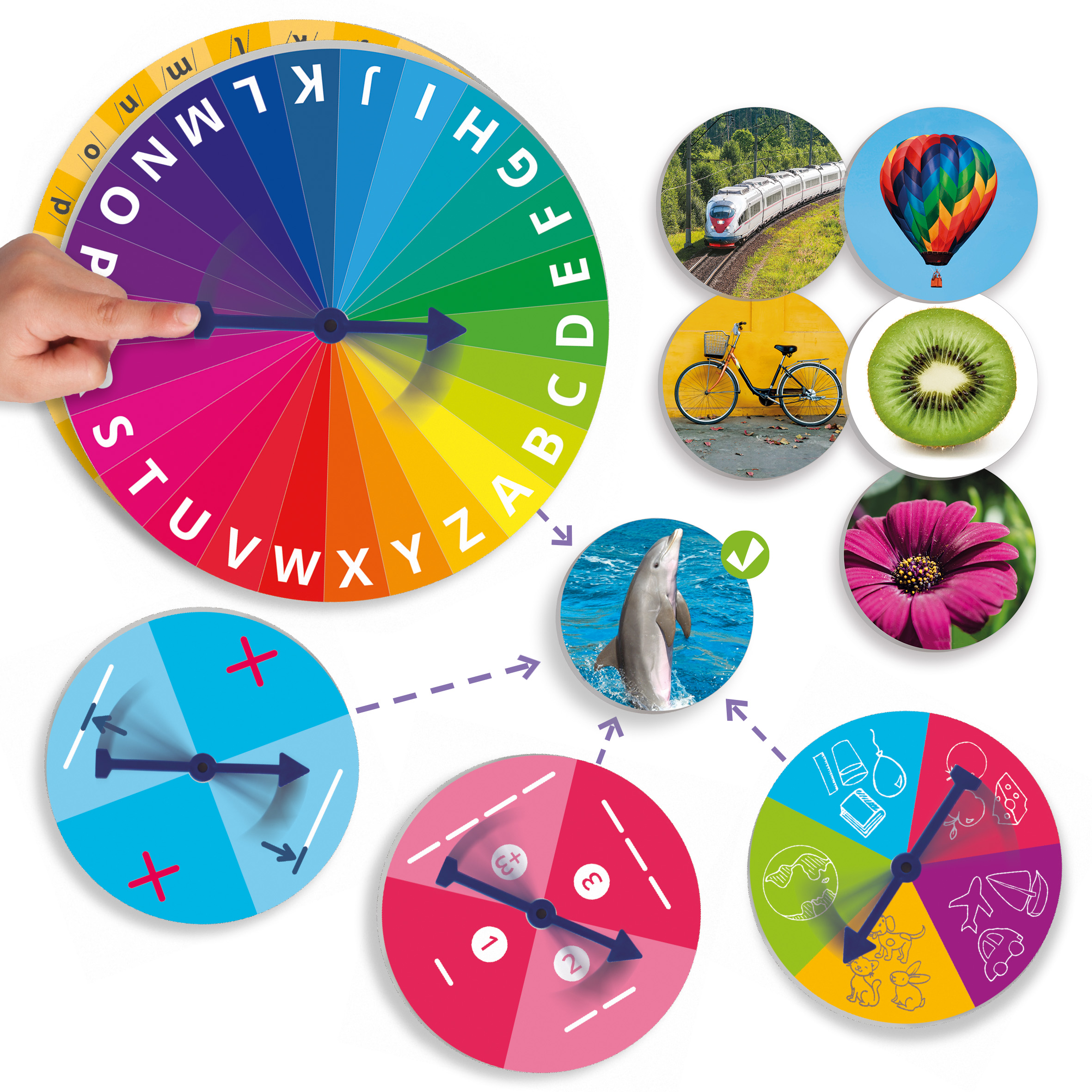 Az olvasás-előkészítő rulett játékos módon segíti a hangok, betűk és szótagok felismerését, ami alapvető készség az olvasástanulás előtt. A gyerekek különféle rulett-tárcsák segítségével keresik meg azokat a képeket, amelyek adott kezdőhanggal, fonémával rendelkeznek, vagy meghatározott számú szótagból állnak. A valósághű fotók segítik a pontos felismerést és a szókincs bővítését. Kiváló eszköz diszlexia megelőzésére és fejlesztésére, hiszen támogatja a hangokra bontást, a szótagolást és a helyes kiejtés kialakítását.