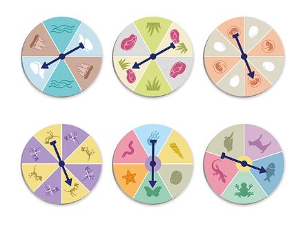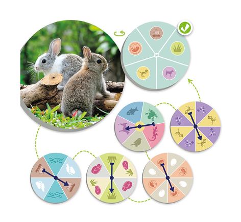 A gyermekek a rulettkerekek megpörgetésével különböző jellemzőket kapnak, majd ezek alapján keresik meg a megfelelő állatokat a valódi fotókkal illusztrált kártyák közül.