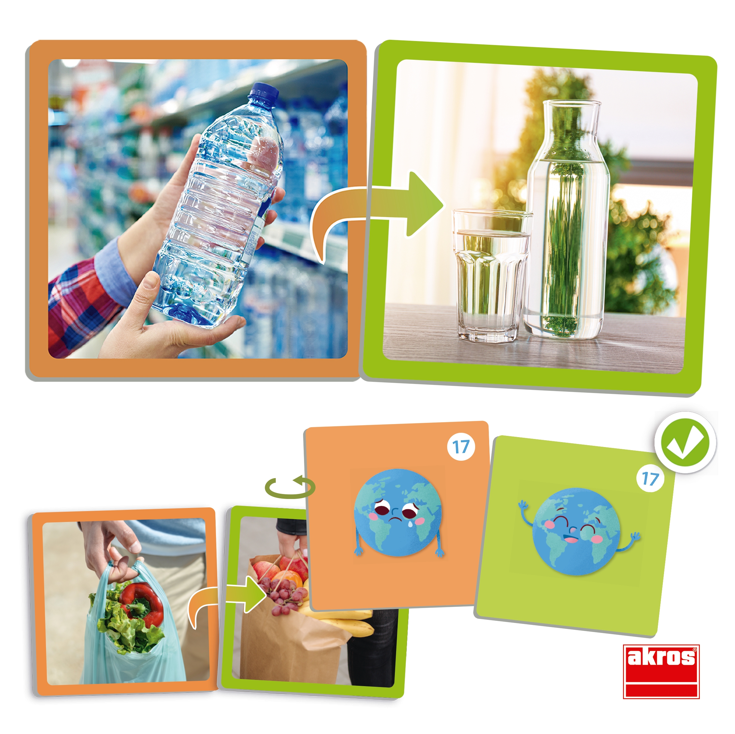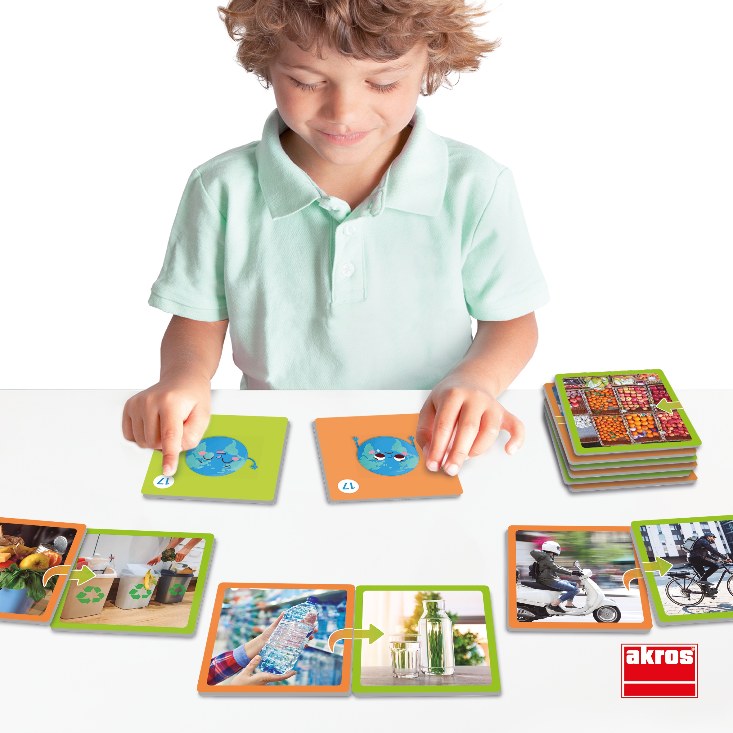 Tartalma 34 db nagyméretű, valósághű kép hátoldali önértékelő rendszerrel, vastag, robusztus, nagyon strapabíró, kiváló minőségű kartonból. Ez a társasjáték arra ösztönöz minket, hogy apró változtatásokat vezessünk be mindennapi életünkben, ezzel felhívva a figyelmet arra, hogy cselekedeteinkkel egy fenntarthatóbb világot teremtsünk. Tanítani annyi, mint segíteni az embereknek jobbá tenni a világot! Kártya méretei: 9x9 cm.
