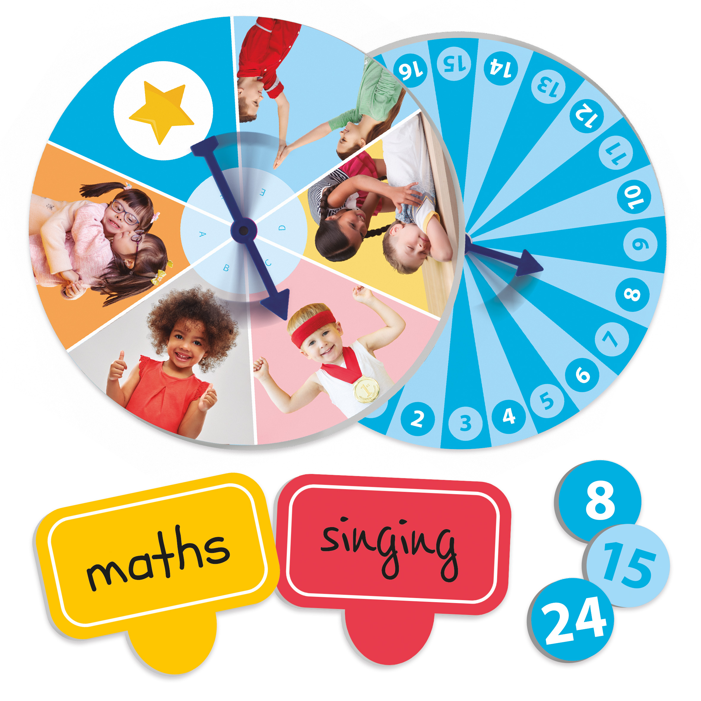 Önbizalom rulett – énképfejlesztő játék Tartalmaz: 3 db karton rulett (18 cm), 24 db újraírható karton lufi (10x8 cm), 24 db kör alakú kartonkártya (3 cm), 12 db filctoll Anyaga: kiváló minőségű, tartós karton Ajánlott korosztály: 3–8 év Fejlesztési területek: érzelmi intelligencia, empátia, szociális készségek, értékek, önkifejezés, szókincs és kommunikáció