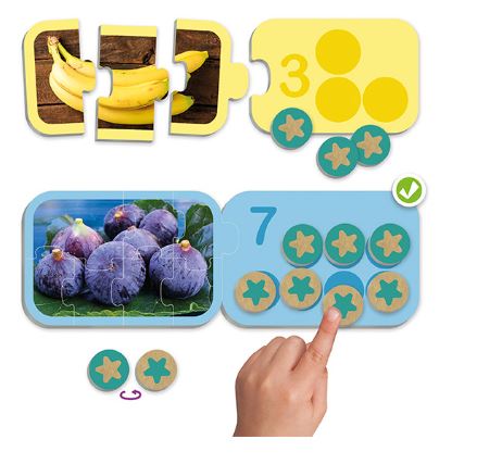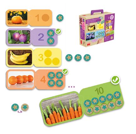A Számolás 1–10-ig egy élményszerű fejlesztőjáték, amely segít a számfogalom kialakításában és elmélyítésében. A gyermekek valós fotókon keresztül számolják meg az elemeket, majd a megfelelő számig egészítik ki a táblákat a kör alakú számlálókkal. A játék lehetőséget ad a számok bontásának vizuális és intuitív megértésére is. A nagy méretű, strapabíró elemek könnyen kezelhetők, így a tanulás természetes módon, játék közben történik. Ideális eszköz óvodai és otthoni fejlesztéshez egyaránt.