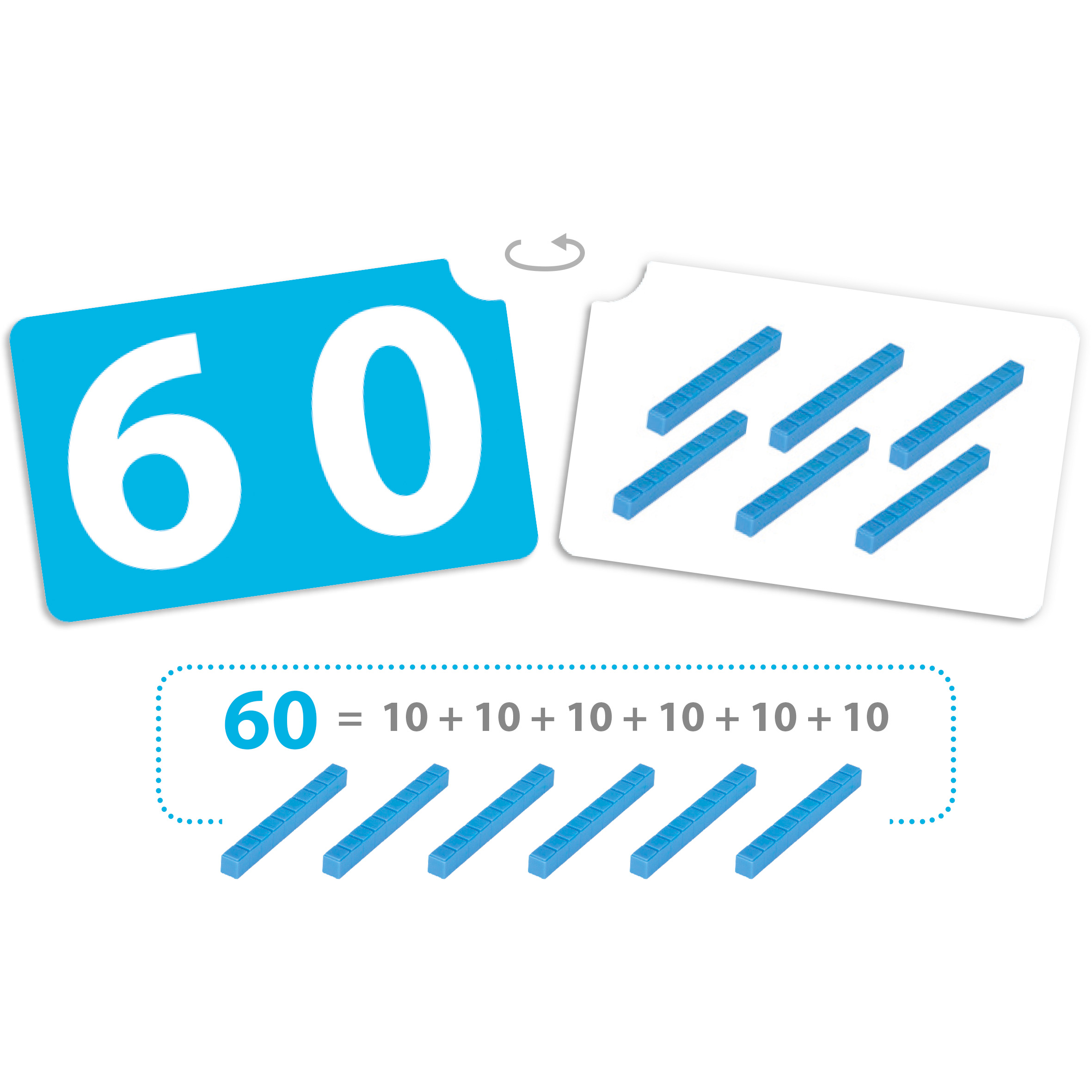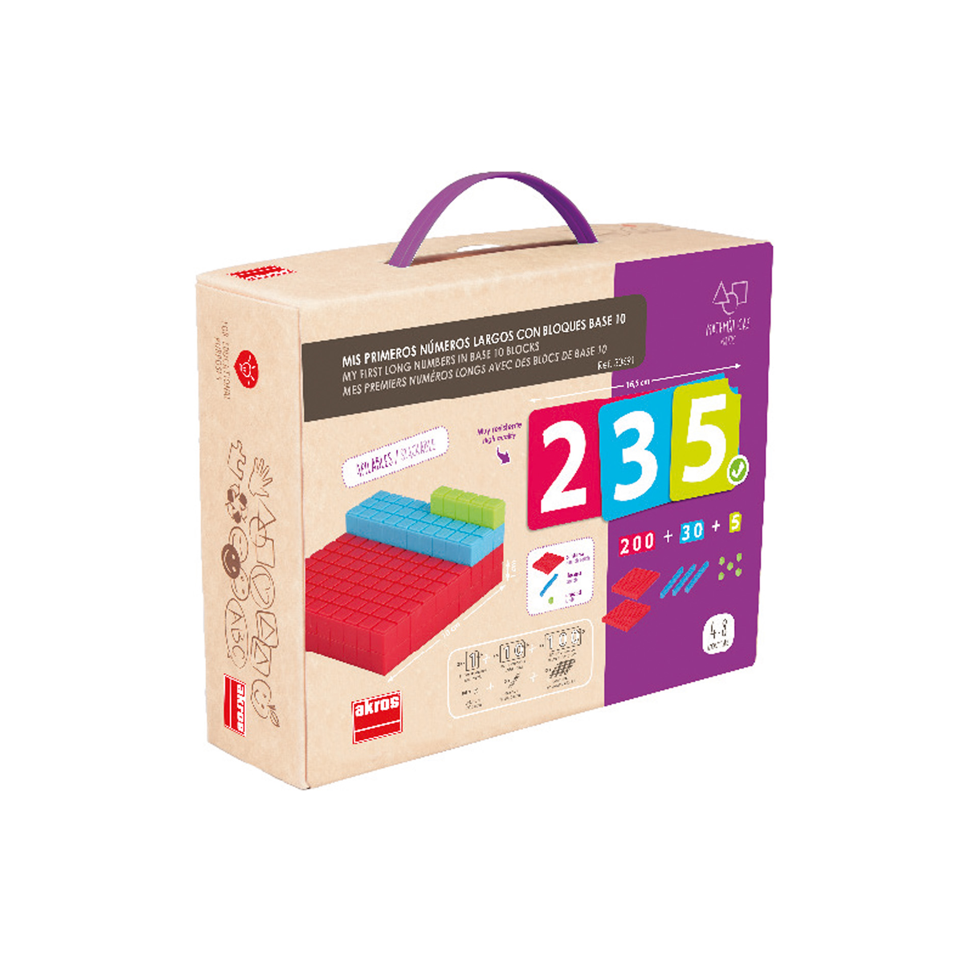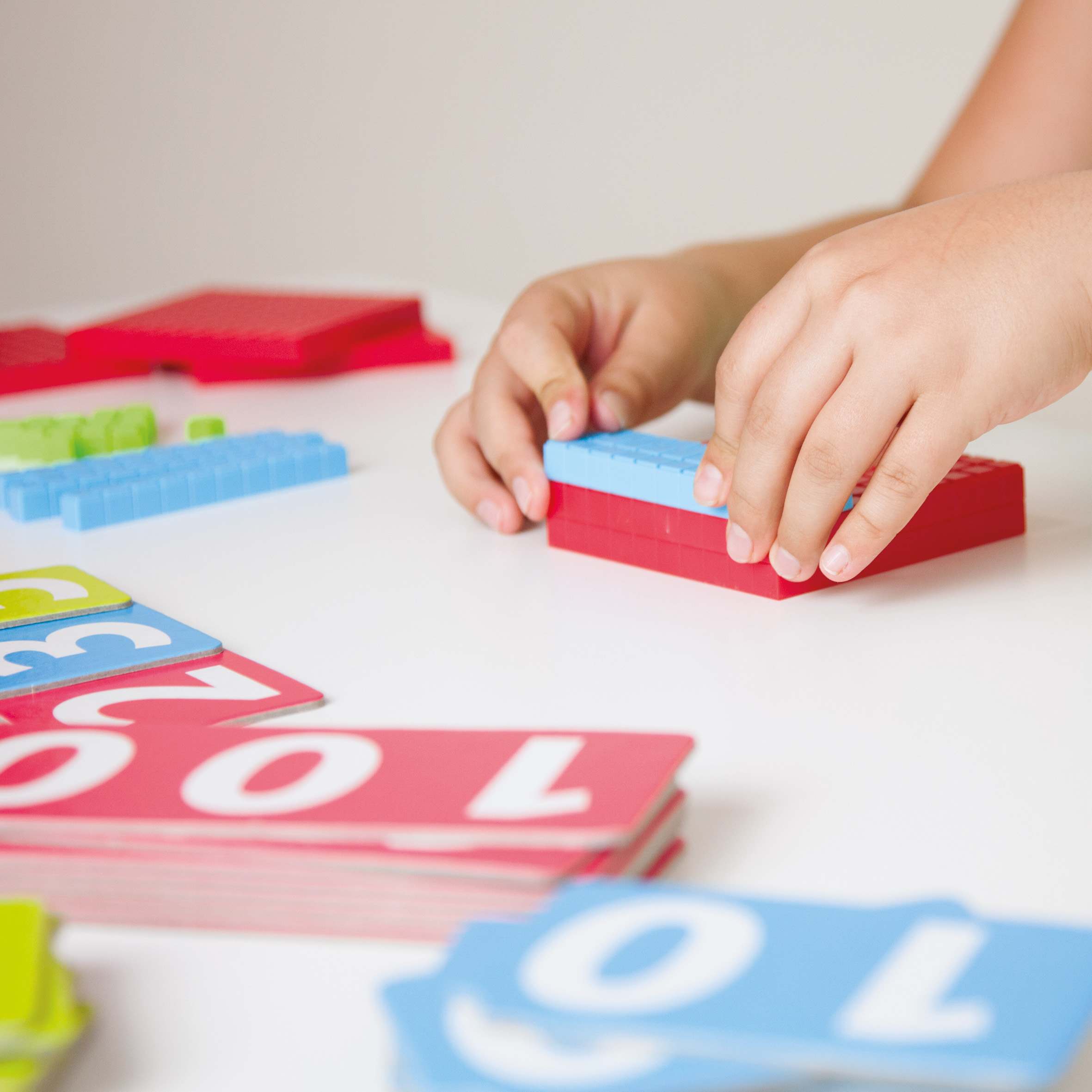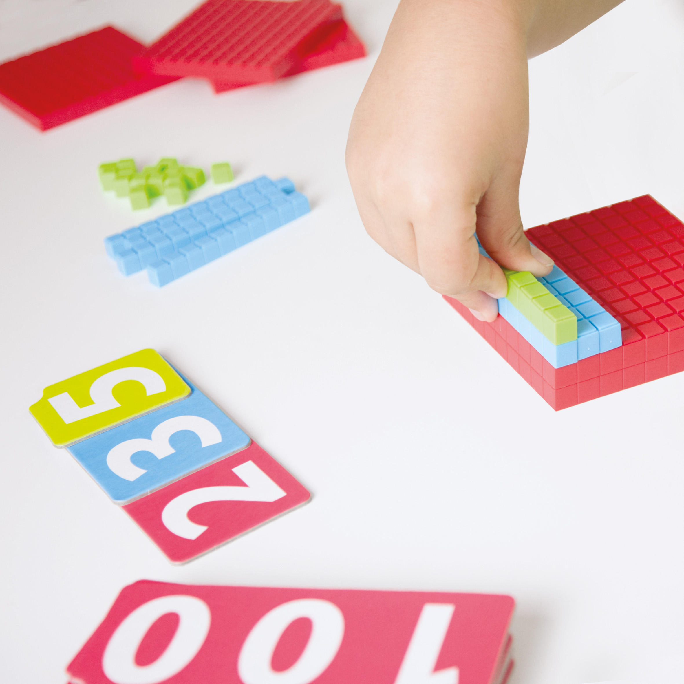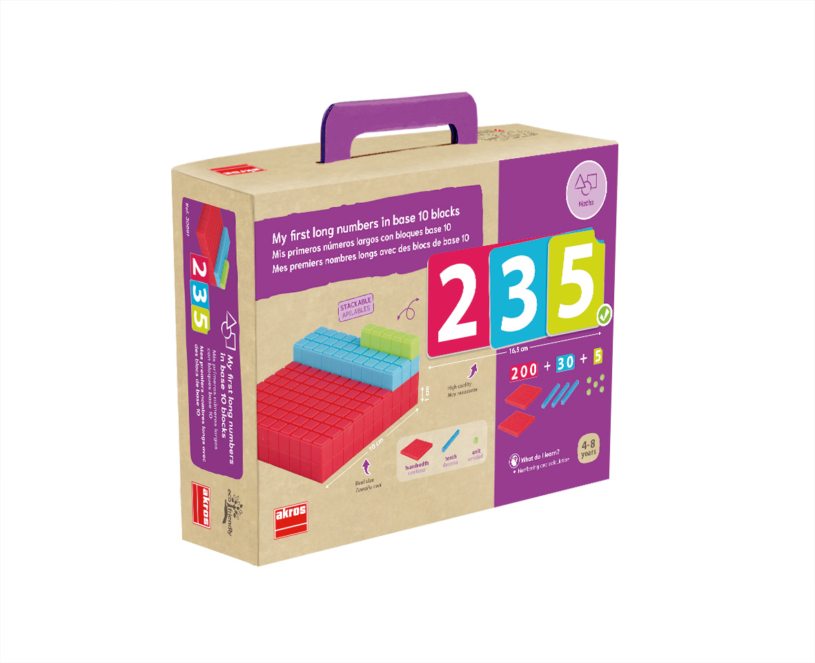 Az első számépítő játékom – tízes számrendszer Tartalmazza: 45 megfordítható vastag kartonlap (20 egységlapka, 9 tízes kártya, 9 százas kártya, 7 jelzőkártya) 125 db 10-es számrendszerbeli blokk (105 egység kocka, 10 tízes rúd, 10 százas tábla) Anyaga: karton és műanyag blokkok Ajánlott kor: 4–8 év Fejleszti: számfogalom, mennyiségfogalom, összeadás-bontás, helyi értékek megértése, logikai gondolkodás, Montessori-módszer szerinti szemléltetés