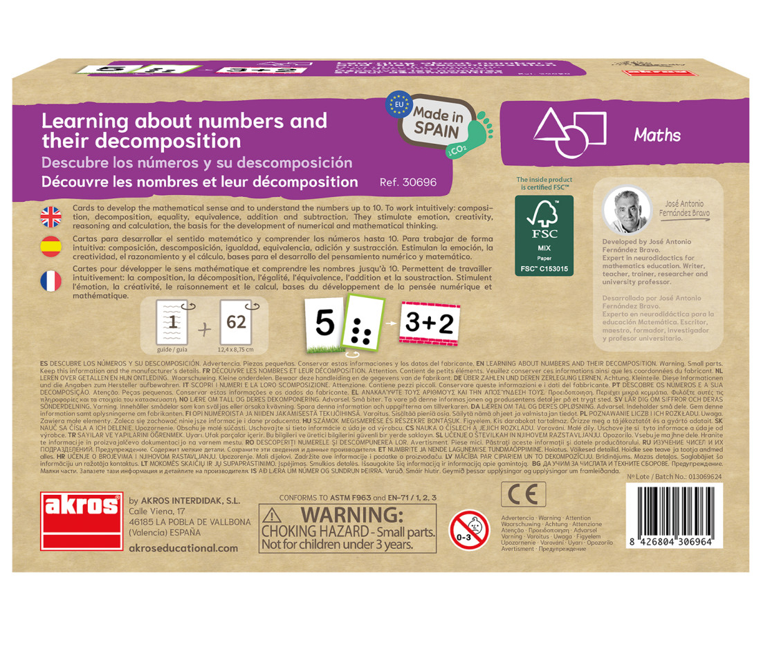 Ezzel az intuitív, játékos kártyacsomaggal a gyerekek könnyedén megértik a számok 10-ig terjedő felépítését és bontását. A játék során saját élményen keresztül fedezik fel az összeadás, kivonás, egyenlőség, ekvivalencia és számkompozíció alapjait. A módszer a neurodidaktikai megközelítést követi, amely támogatja az érzelmi bevonódást, a kreativitást és a logikus gondolkodást. A játékot Dr. José Antonio Fernández Bravo, a koragyermekkori matematika egyik nemzetközileg elismert szakértője fejlesztette, így megbízható alapot ad a későbbi matematikai gondolkodás kiépítéséhez.