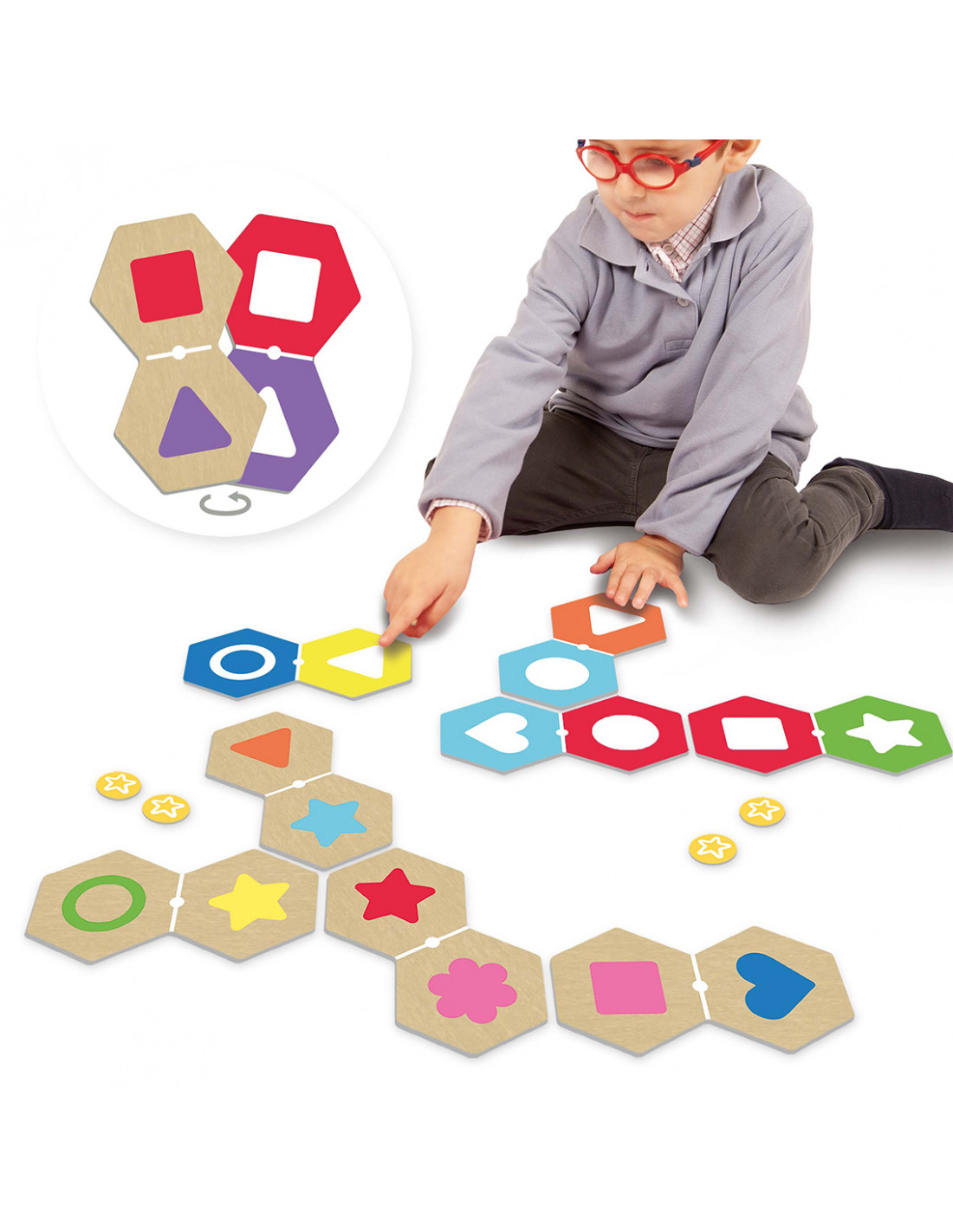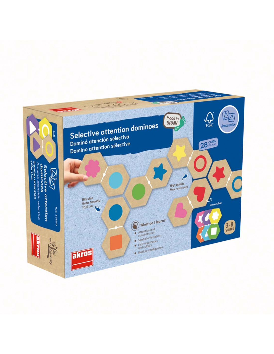 Ez a vidám és sokféleképpen játszható dominójáték kifejezetten a szelektív figyelem fejlesztésére készült. A gyermekeknek mindig csak egy tulajdonságra – a formára vagy a színre – kell összpontosítaniuk ahhoz, hogy megtalálják a megfelelő párost. A kétoldalas dominók többféle játékvariációt tesznek lehetővé, így a készlet hosszú időn át izgalmas marad. Ideális otthoni és óvodai használatra egyaránt.