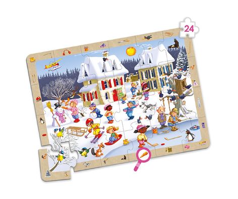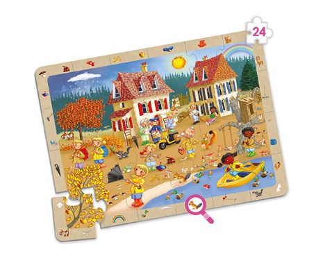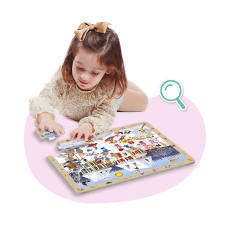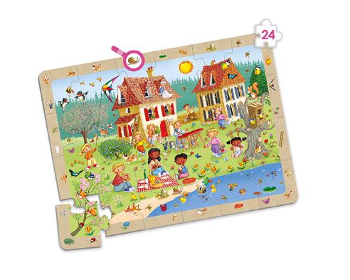 A kirakást követően a gyermekek feladata, hogy a kép keretén látható elemeket megtalálják a kirakóban, így a játék a puzzle-élményt célzott megfigyelési feladattal egészíti ki.