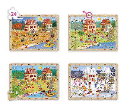 A csomag négy különálló kirakóst tartalmaz, amelyek a tavasz, nyár, ősz és tél jellegzetes jeleneteit mutatják be, gazdag, részletgazdagon illusztrált képekkel.