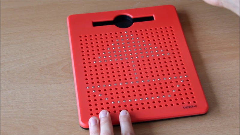 A mágneses tollal szabadon rajzolhatunk a kis pöttyös táblán, a kép pedig az apró bogyók segítségével fog megjelenni.