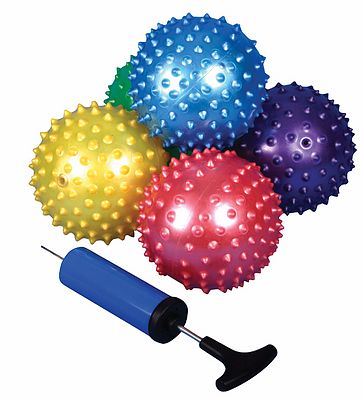 A tüskelabdák egy 25 darabos készletben elérhetőek Különböző színekben kaphatóak az élénk zöld, a citromsárga, a kék, a lila és a rózsaszín is megtalálható a szettben. A labdák anyaga rugalmas gumi, így ledobáskor visszapattannak a földről. A készlethez tartozik egy pumpa is, mellyel gyorsan és könnyedén felfújhatóak a labdák, melyek átmérője 10 cm