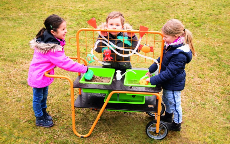 A mobil homokozó- és vizezőasztal remek kikapcsolódást ígér a valódi sáros élményhez.