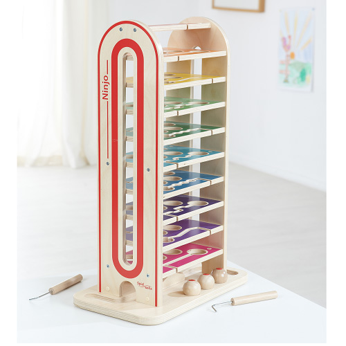 A Ninjo toronylabirintus egy klasszikus, függőleges kialakítású fejlesztőjáték, amely játékos formában támogatja a finommotorika, a szem-kéz koordináció és a koncentráció fejlődését.