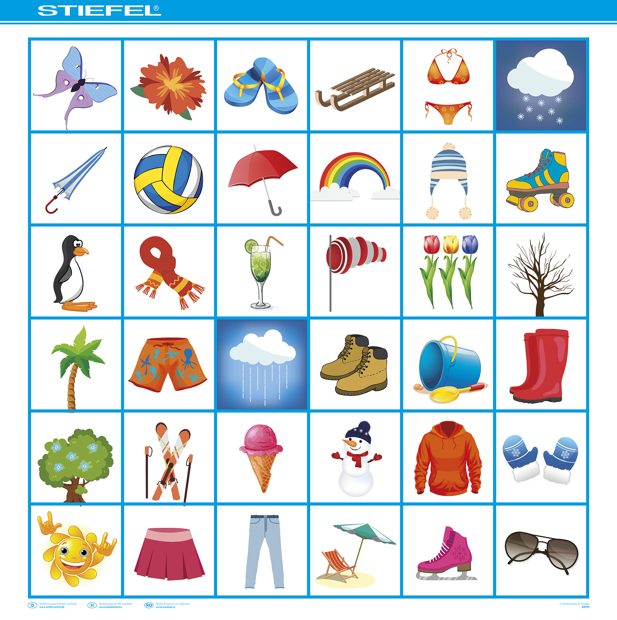 Mintás robot egér gyakorlópálya – Évszakok Évszakokhoz kapcsolódó képi elemekkel ellátott mezők Különféle feladatok megoldásához használható, például: haladj arra a mezőre, amely a télhez tartozik, majd menj tovább egy nyári tevékenységet ábrázoló képre A robot egér egy lépésben 12,5 cm-t halad, 90°-ban fordul Fejleszti a logikus gondolkodást, az útvonaltervezést és az évszakokhoz kapcsolódó ismereteket Kemény, vastag fóliával bevont karton, hosszú élettartam Óvodások és kisiskolások számára ajánlott Remek kiegészítője a LER 2841 és LER 2831 cikkszámú programozható robot egereknek