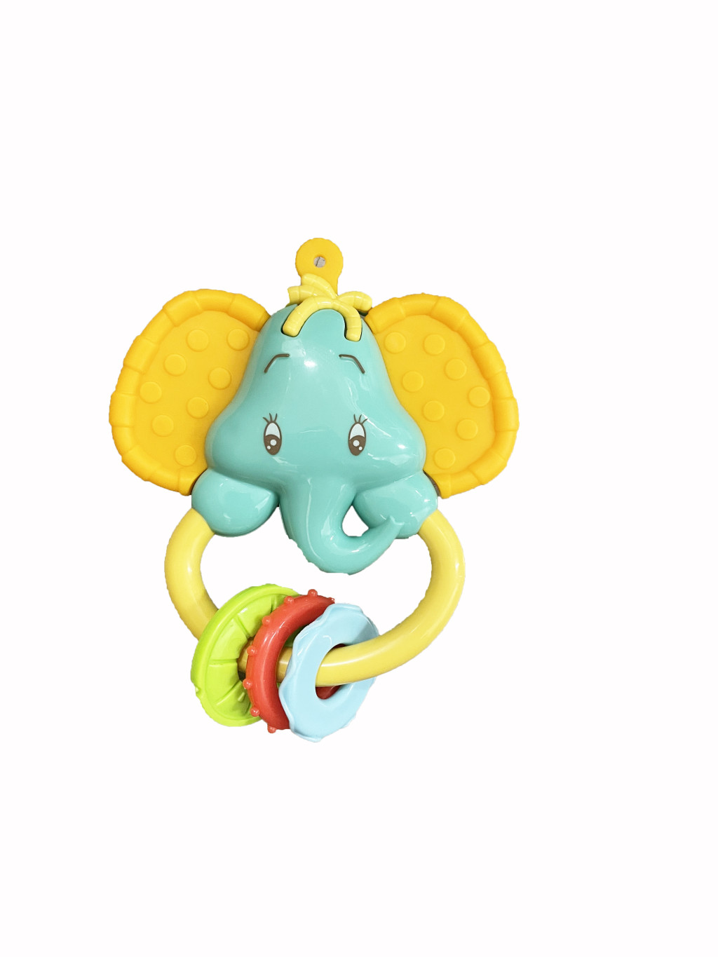 A legkisebbek számára készített elefántos csörgős rágóka, segíti enyhíteni a fogzás miatti ínyfájdalmakat.